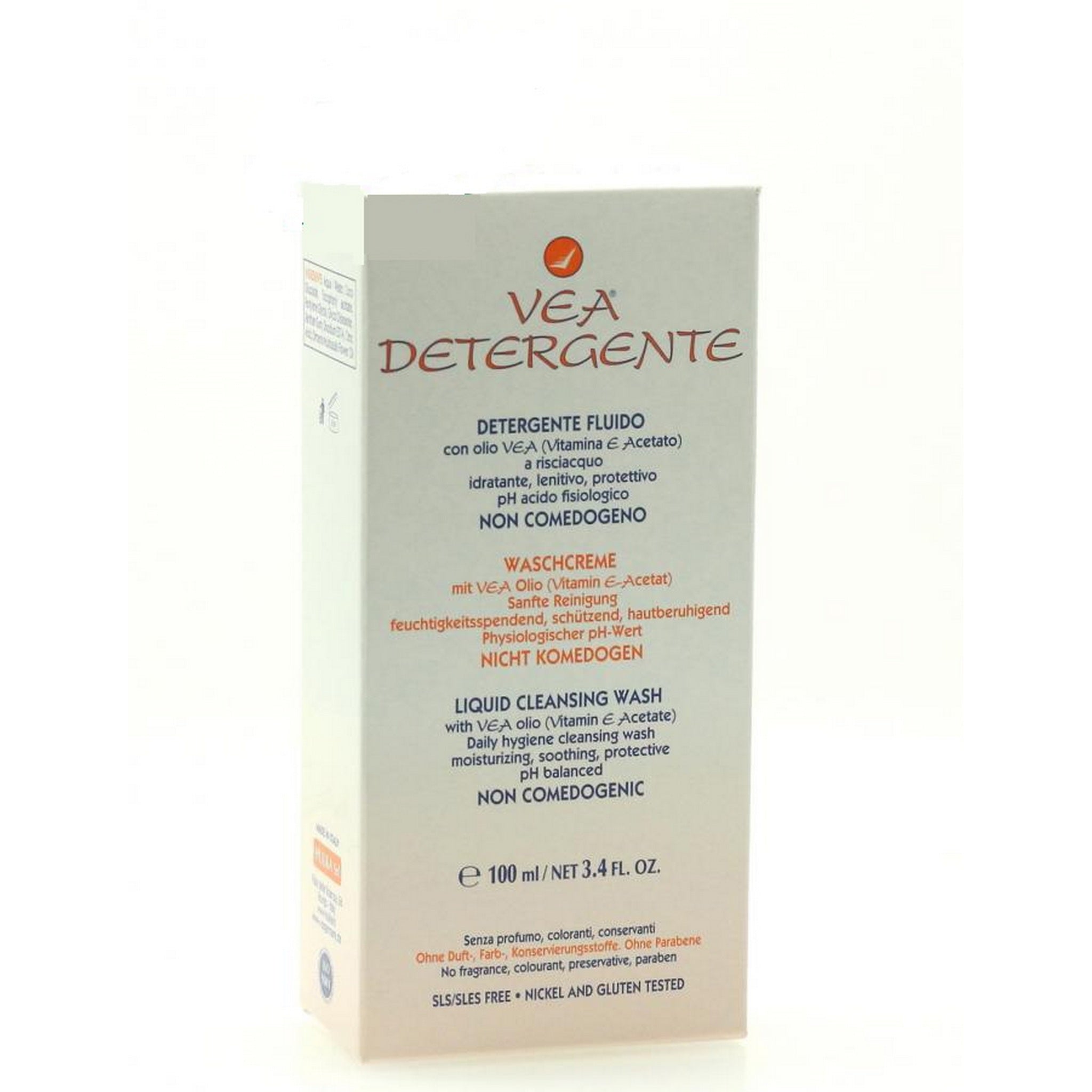 Vea Detergente è un detergente di nuova concezione poiché contiene un solo tensioattivo (non ionico) di esclusiva origine vegetale, delicato e ad altissima tollerabilità, non irritante, associato all’olio Vea (vitamina E acetato allo stato puro) in percentuale elevata con effetto idratante, protettivo e lenitivo del prurito. Non contiene detergenti anionici (saponi o derivati del sodio lauril solfato). Non contiene detergenti anfoteri (derivati delle betaine). Non contiene profumi, conservanti e coloranti, per minimizzare i rischi di allergia.