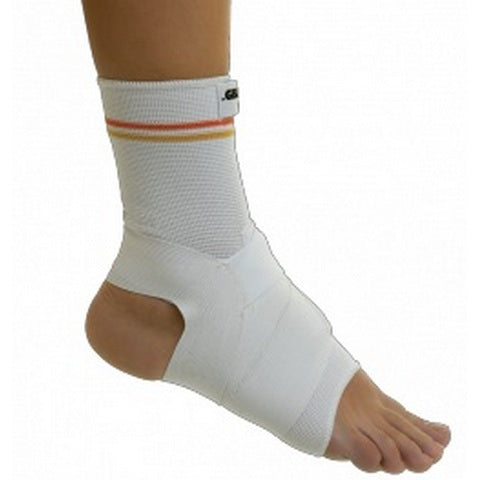 Gibaud Ortho Cavigliera legamenti Dispositivo medico indicato per distorsione lieve del compartimento esterno o interno, distorsione del compartimento esterno o interno di media gravità dopo la fase edematosa, fase di riabilitazione sportiva post-operatoria. Caratteristiche: Cavigliera ambidestra a tallone aperto realizzato con tessuto ad alta contenzione. Il richiamo dinamico, per il suo effetto anti-varo o anti-valgo, detende (allenta) il legamento leso nella distorsione lieve e di media gravità, permettendone la cicatrizzazione. Modalità d'utilizzo Infilare la cavigliera come un calzino. Applicare la benda elastica al tassello situato in corrispondenza del collo del piede in modo che la parte ad asola sia rivolta verso il lato interno della caviglia in caso di lesioni esterne, o verso il lato esterno in caso di lesioni interne della caviglia. Tendere uniformemente la benda elastica ruotandola attorno al piede, passarla sotto la pianta del piede e sul collo del piede. Avvolgere l'asola attorno al tallone e ancorarla tramite la chiusura a strappo sul tassello centrale. Componenti Corpo: 37% fibra di gomma, 47% poliammide, 5% elastan, 17% cellulosa. Banda elastica: 31% fibra di gomma, 50% poliestere, 19% poliammide. Avvertenze Lavare a mano in acqua a 30 °C con sapone o detersivo neutri. Sciacquare accuratamente. Non strizzare, ma togliere l'acqua comprimendo il capo dentro un asciugamano di spugna. Lasciare asciugare orizzontalmente. Non stirare. Formato Circonferenza sopra la caviglia in cm: da 19 a 21 taglia 1; da 21 a 23 taglia 2; da 23 a 25 taglia 3; da 25 a 37 taglia 4; da 27 a 29 taglia 5. Altezza del tallone in cm: 12 taglia 1; 12 taglia 2; 12 taglia 3; 12 taglia 4; 12 taglia 5. Cod.5G0604X03AB01/5G0604X03AB02/5G0604X03AB03/ 5G0604X03AB04/5G0604X03AB05