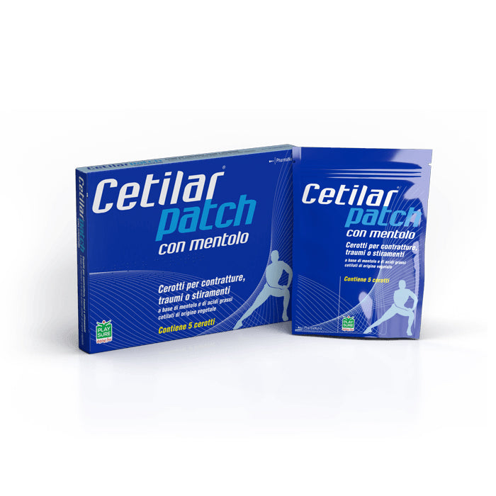 Cetilar Patch con mentolo e' un cerotto ad azione locale che, grazie alla sua formulazione a base di mentolo ed acidi grassi cetilati di origine vegetale, contribuisce alla riduzione della sintomatologia dolorosa muscolare in conseguenza di traumi o contratture di varia origine (come traumi sportivi, torcicollo, mal di schiena, eccetera); il suo meccanismo di azione che esplica una fresca sensazione di sollievo sulla zona trattata, svolge contemporaneamente un'azione emolliente, grazie alla natura lipidica dei suoi componenti. Il cerotto Cetilar Patch con mentolo contiene una miscela brevettata di mentolo ed acidi grassi cetilati di origine vegetale. Una volta applicato sulla zona dolente, grazie all'azione del mentolo, dona una fresca sensazione di sollievo dalla sintomatologia dolorosa, contribuendo in questo modo al recupero della mobilita'. La natura lipidica degli acidi grassi, inoltre, svolge un'azione emolliente sull'area di applicazione, volta anche a prevenire fenomeni irritativi sulla cute. L'uso di Cetilar Patch con mentolo e' quindi indicato nel trattamento delle affezioni dolorose muscolari provocate da traumi e contratture, anche in conseguenza dell'attivita' sportiva. Modalita' d'uso Aprire la busta ed estrarre un cerotto. Rimuovere la carta di protezione utilizzando l'apertura facilitata al centro. Applicare il cerotto e mantenerlo in situ per 8 ore. L'applicazione puo' essere ripetuta nella giornata lasciando aerare per un breve periodo la superficie cutanea tra un'applicazione e l'altra per prevenire fenomeni di sensibilizzazione cutanea. Richiudere la busta tramite il minigrip. I cerotti sono monouso e non riutilizzabili. Componenti Mentolo, acidi grassi cetilati di origine vegetale, copolimero acrilato.