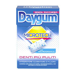 Chewing-gum senza zucchero, con microgranuli, che aiutano la pulizia dei denti.