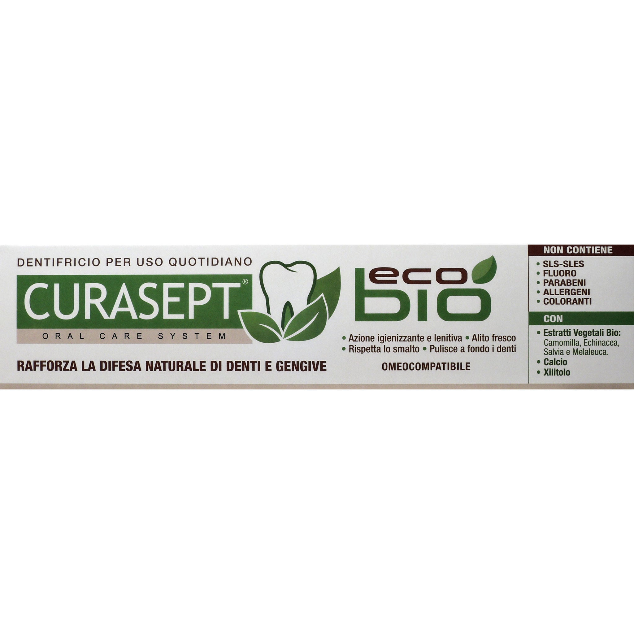 Utilizzare almeno 2 volte al giorno dopo i pasti. Per un'azione sinergica si consiglia di effettuare uno sciacquo con il colluttorio Curasept Ecobio.[EAN: 8056746071547]