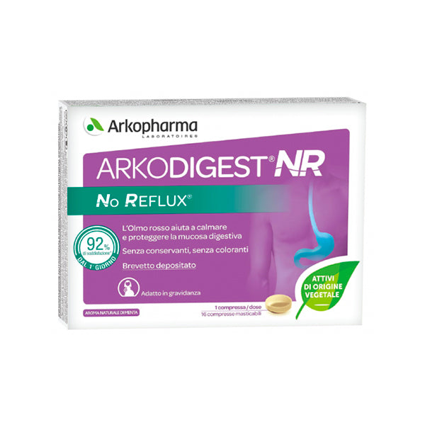 Arkodigest® No Reflux NR è la 1° formula di origine vegetale e minerale dei laboratori Arkopharma, senza conservanti e senza coloranti, che aiuta a lenire e proteggere le mucose digestive sensibili. Contribuisce al miglioramento del comfort digestivo.
