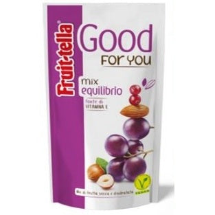 FRUITTELLA GOOD FOR YOU MIX EQUILIBRIO Formato Confezione da 35g. Mix di frutta secca e disidratata: uva, mandorle, nocciole, mirtilli rossi. Fonte di Vitamina E. [EAN: 0000080853626]