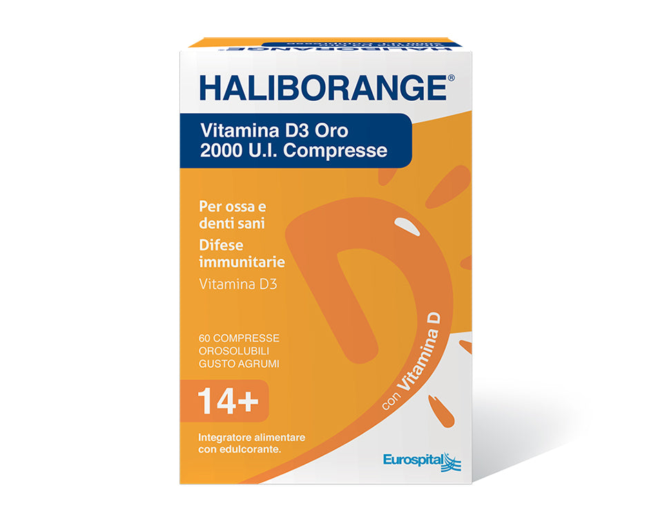 Haliborange Vitamina D3 Oro 2.000 U.I. Compresse è un integratore di Vitamina D3 (2000 U.I.) in compresse orosolubili con tecnologia brevettata ad elevato assorbimento.
