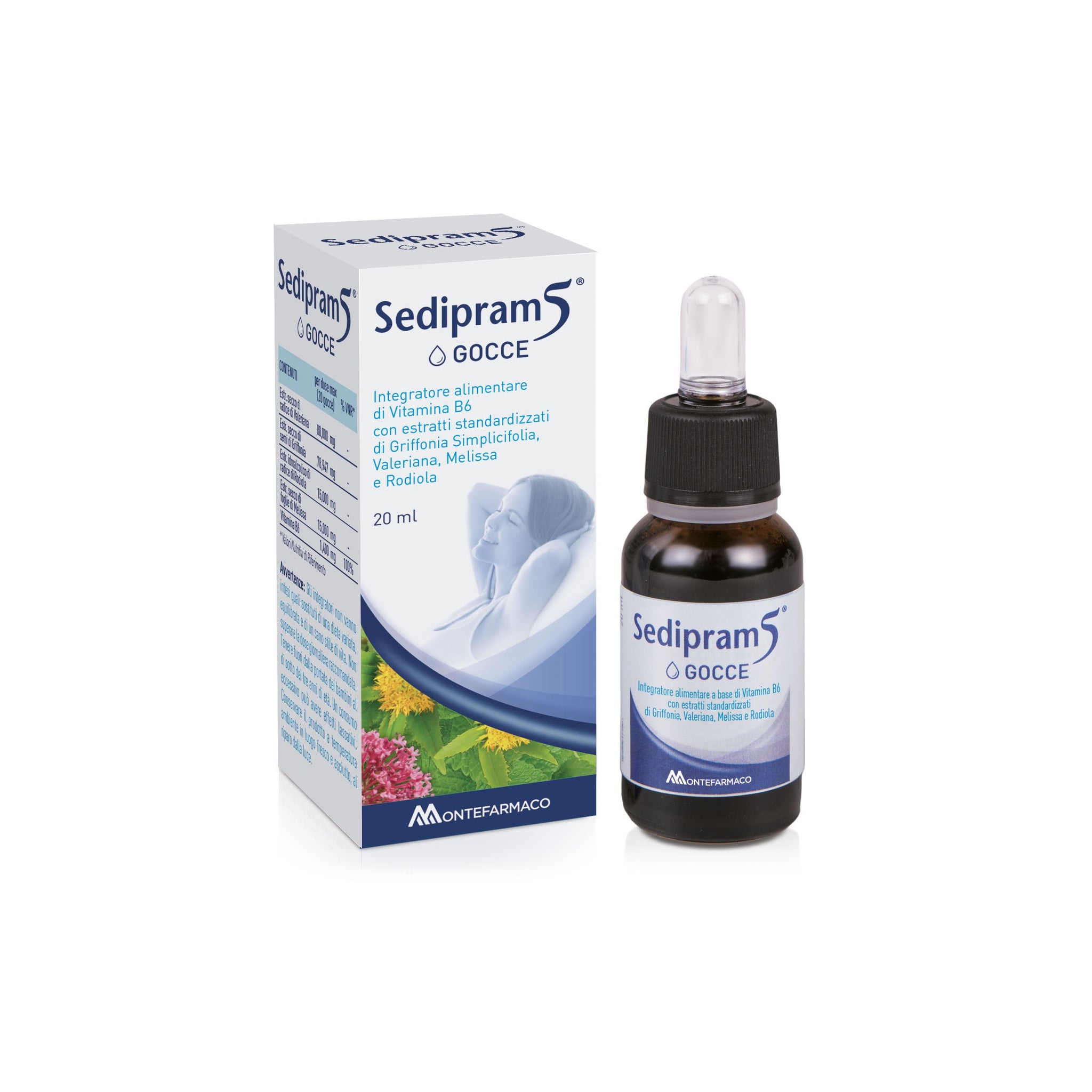 Sedipram 5 e' un integratore alimentare che favorisce l’armonia e l’equilibrio dell’umore e del buon riposo. Unisce delle proprieta' calmanti, rilassanti e sul tono dell’umore degli estratti di: