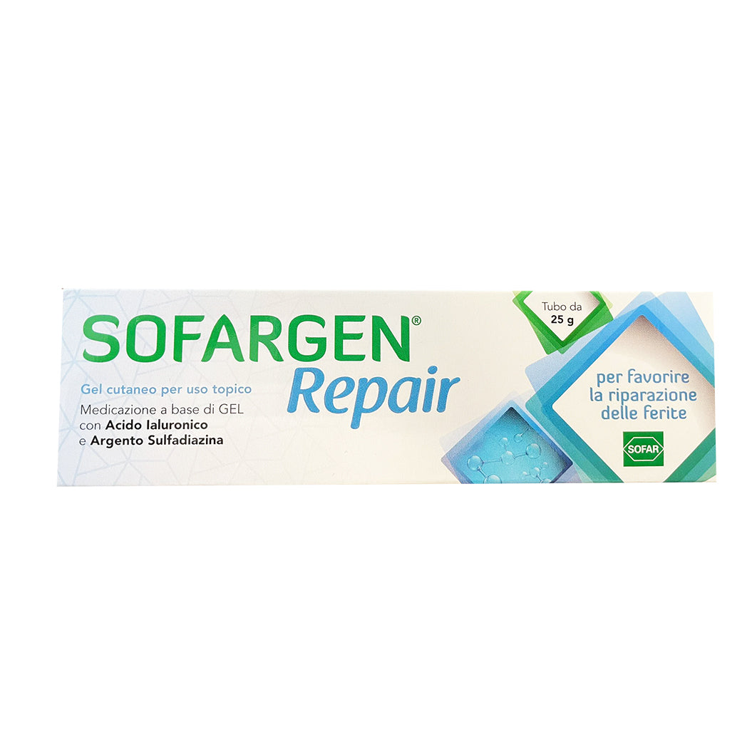 Medicazione a base di Gel con Acido Ialuronico e Argento Sulfadiazina, utile per favorire la riparazione delle lesioni cutanee quali; abrasioni, escoriazioni, tagli, ferite, scottature, lesioni, irritazioni cutanee.