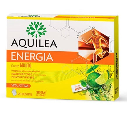 Aquilea Energia è un integratore di Magnesio e Zinco in forma chelata, Potassio e Ginseng. Il Magnesio contribuisce alla normale funzione muscolare, al normale funzionamento del sistema nervoso, alla normale sintesi proteica, all’equilibrio elettrolitico, alla normale funzione psicologica e alla riduzione della stanchezza e dell’affaticamento. Il Potassio contribuisce al normale funzionamento del sistema nervoso e alla normale funzione muscolare. Lo Zinco contribuisce alla normale funzione cognitiva, al normale metabolismo dei macronutrienti, alla normale funzione del sistema immunitario e alla protezione delle cellule dallo stress ossidativo. Il Ginseng svolge un’attività antiossidante, adattogena e tonica in caso di stanchezza fisica e mentale.