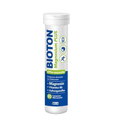 Bioton Magnesium Plus e' un integratore alimentare in compresse effervescenti a base di Magnesio, Vitamina B6 ed estratto secco di Ashwagandha.