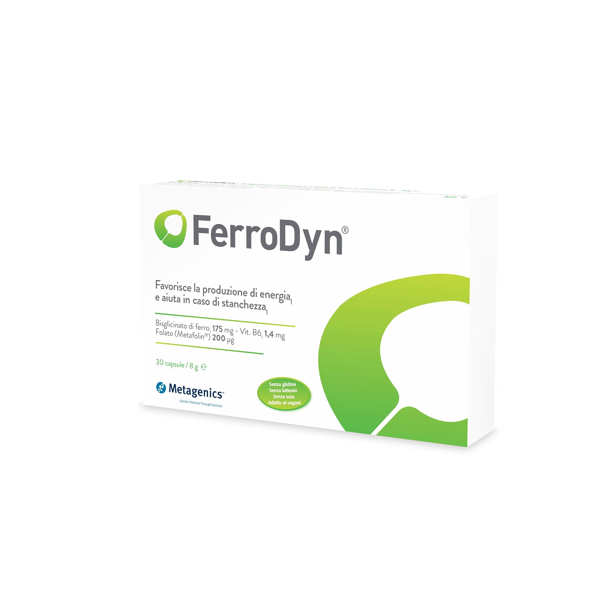 - Cofattori che potenziano l’azione del ferro: vitamina B6 e folato (Metafolin)