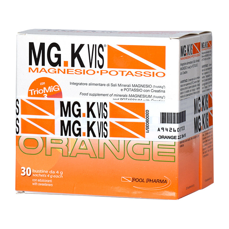 MG.K Vis Bustine è un integratore a base di 3 sali organici assimilabili di Magnesio (TrioMig: Sali di Magnesio dell’acido citrico, Magnesio gluconato, Magnesio lattato) e Potassio con Creatina.