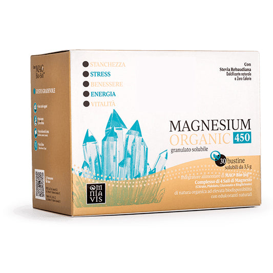 Integratore alimentare di MAG4 Bio-Sol Complesso di 4 Sali di Magnesio (Citrato, Pidolato, Gluconato e Bisglicinato) di natura organica ad elevata biodisponibilita' con edulcoranti naturali. Il Magnesio contribuisce alla riduzione della stanchezza e dell’affaticamento, aiuta a mantenere la salute delle ossa, contribuisce alla normale funzione muscolare, psicologica e del sistema nervoso.