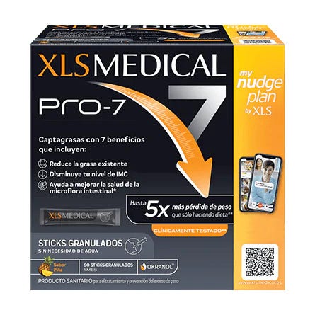 XLS Medical Pro-7 è un dispositivo medico per un efficace controllo del peso, se abbinato ad una dieta bilanciata e ad una regolare attività fisica. Si lega ai grassi alimentari con 7 benefici, tra cui:
