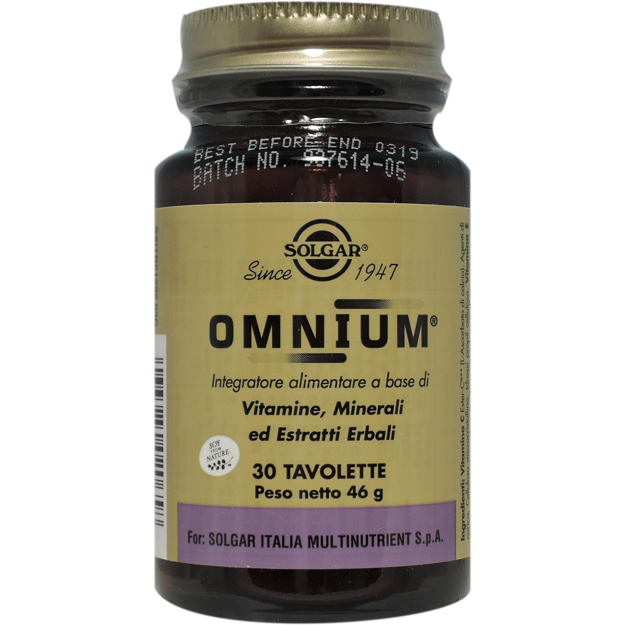 OMNIUM è l’integratore alimentare multivitaminico-multiminerale, arricchito con preziosi nutrienti ed estratti erbali antiossidanti. Le vitamine B2, B6, la niacina, l’acido folico, le vit. B12 e Vit. C contribuiscono alla riduzione di stanchezza e affaticamento e alla funzione psicologica; le vitamine B1, B2, la niacina, la biotina, la Vit.B1 e la Vit.C contribuiscono al normale funzionamento del sistema nervoso; la Colina, la Vitamina B6, l’Acido Folico e la Vitamina B12 contribuiscono al normale metabolismo dell'omocisteina. Le vitamine B2, C, E, lo zinco, il rame e il selenio contribuiscono alla protezione delle cellule dallo stress ossidativo e gli estratti di curcuma e broccoli presentano azione antiossidante.