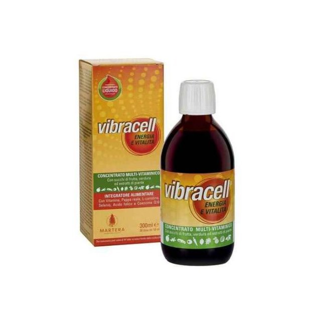 Vibracell è un integratore con Vitamine, Pappa Reale, L-Carnitina, Selenio, Folato e Coenzima Q10. Le Vitamine A, B6, B12 e C, la Biotina, il Folato ed il Selenio contribuiscono alla normale funzionalità del sistema immunitario. Le Vitamine B1, B2, B6, B12 e C contribuiscono al metabolismo energetico. Le Vitamine B2, B12, C ed il Folato contribuiscono alla riduzione della stanchezza e dell’affaticamento.