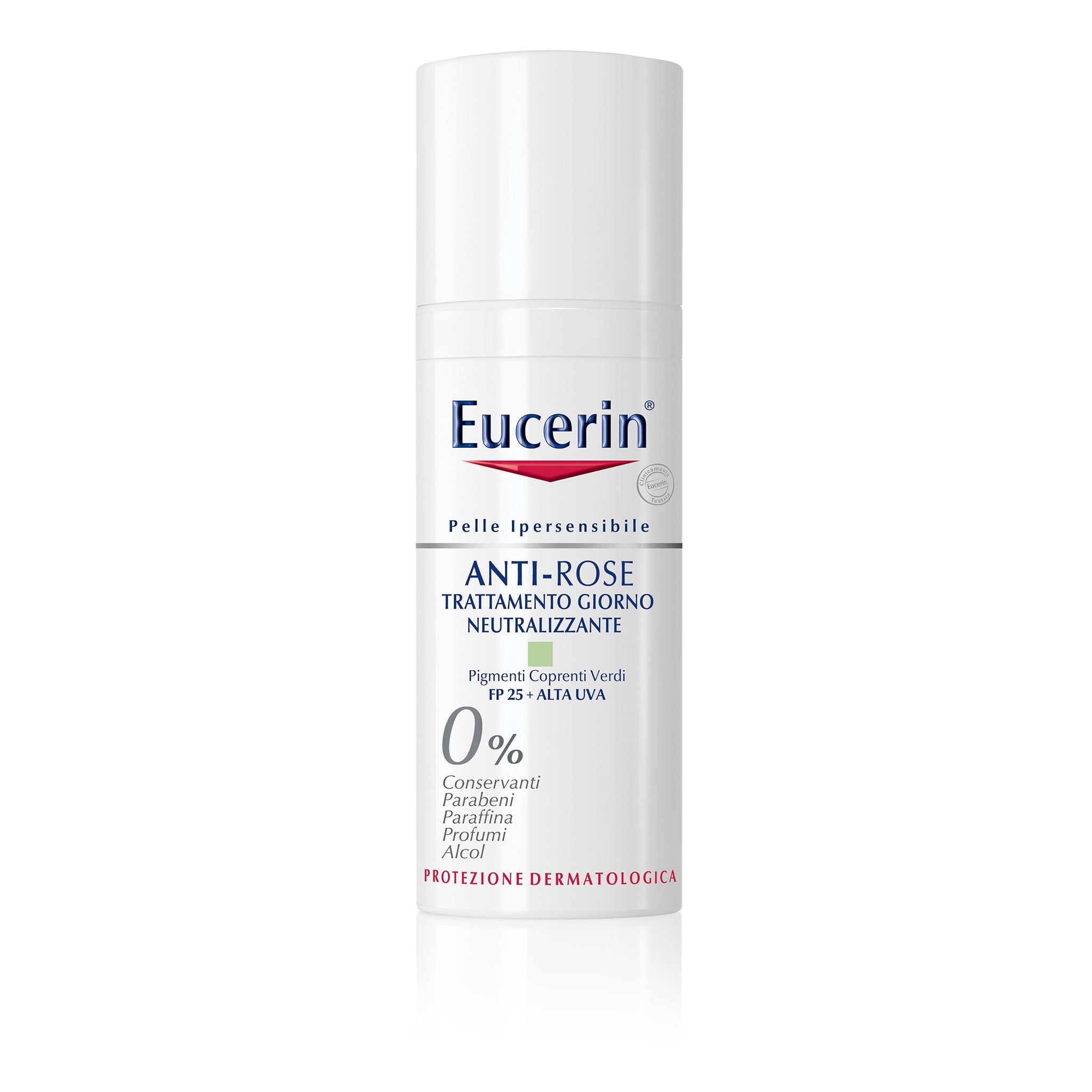 Se la tua pelle e' particolarmente sensibile ed incline alla Rosacea/Couperose Eucerin Antirose Giorno Spf25 offre alla tua pelle un effetto lenitivo immediato e copre il rossore visibile. Ripristina la barriera cutanea e regola la sensibilita' della tua pelle agendo direttamente alla fonte dell'iper-reattivita'. La crema contiene inoltre pigmenti verdi che oltre a coprire il rossore della pelle le donano immediatamente un colorito uniforme. Si assorbe rapidamente e idrata la pelle in profondita'. Per proteggere ulteriormente la pelle durante il giorno, questa crema contiene un FPS25 e filtri UVA.